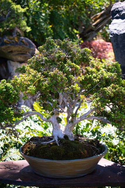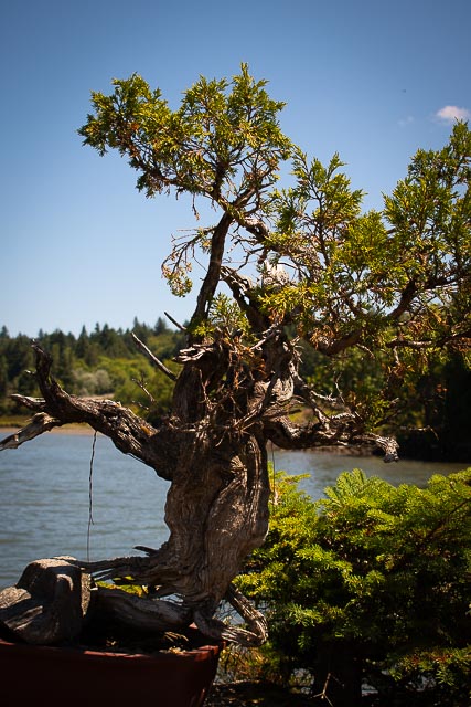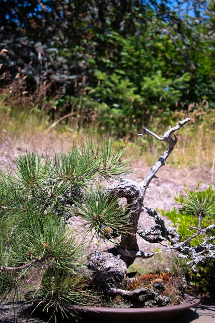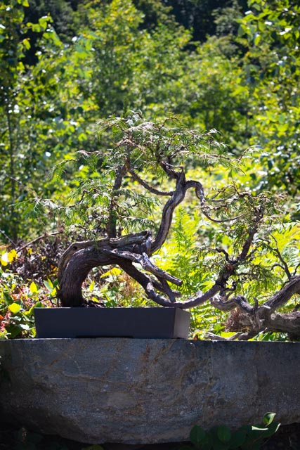 Listening to the stories of the bonsai, I learned that Dan Robinson learned the art at the hands of Japanese masters. When he started on his own, he wanted to push the form to a more free-flowing form by moving away from the very traditional western form of three sections balanced to a form that flowed more with the movement of nature reflective more of its Japanese roots. Bonsai’s origination was a reflection of simplicity, balance, and harmony, I would say that Dan’s adaptation of Bonsai reflects the element of wildness found in nature.